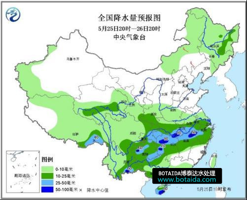 中央氣象臺(tái)還同時(shí)發(fā)布了暴雨預(yù)報(bào):25日夜間至26日白天,貴州北部和東南部、湖南西部和北部、江西北部、湖北東部和南部、安徽西南部、浙江西部、海南島東部和南部、云南東南部等地的部分地區(qū)有大雨或暴雨(50~80毫米)。