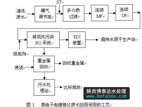 從實際工程效果來看,圖2較圖1的回用理念更先進,具有更高的回收率,系統(tǒng)具有更高的穩(wěn)定性,不易堵塞,回用水質更高;圖2不僅可回收純水而且同時可以回收貴重金屬,特別對含貴重金屬的回收價值更大,回收的重金屬純度可達到97%,回收效率≥90%。