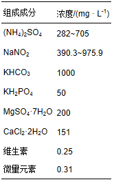 CANON工藝的啟動(dòng)階段采用人工模擬高氨氮廢水.啟動(dòng)完成后,利用某石化公司石油裂化催化劑生產(chǎn)廢水對(duì)微生物進(jìn)行馴化,廢水日產(chǎn)量約為15.6×103 m3.模擬高氨氮廢水的水質(zhì)如表 1所示(于英翠等,2012),微量元素成分見表 2.