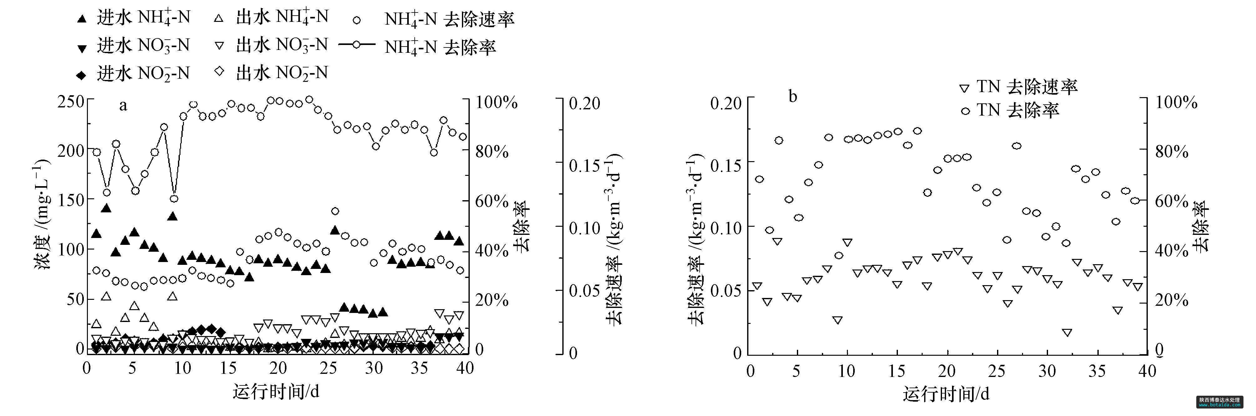 圖4 CANON工藝的微生物馴化階段運(yùn)行效果