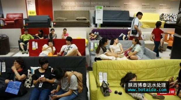 2013年07月28日,北京,當(dāng)天北京再次迎來一個(gè)35度以上的高溫天氣,為了躲避酷暑很多老百姓選擇了到有空調(diào)的大型商場去購物,餐飲和避暑。宜家家居客廳區(qū)沙發(fā)成了搶手貨。