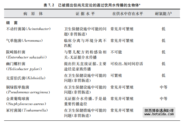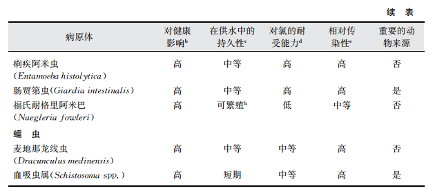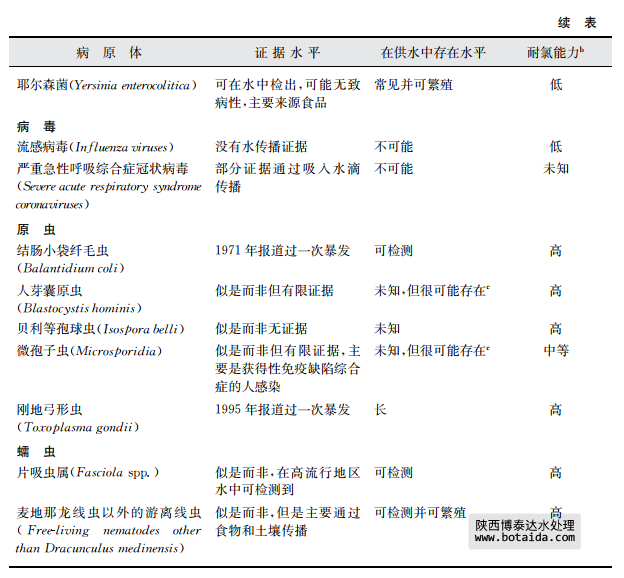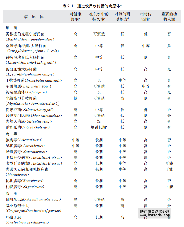 a該表中的病原體在飲用水供應(yīng)中的發(fā)生與公眾衛(wèi)生密切相關(guān)這一事實已經(jīng)被證實。更多關(guān)于本表中病原體和其 他病原體信息見第11章內(nèi)容。