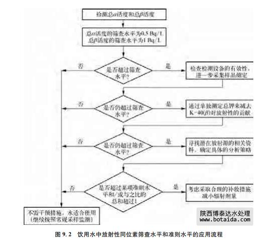 在本準則的第二版中,根據(jù)總α活度和總β活度的篩查水平分別為0.1Bq/L和1Bq/L 確定了IDC為0.1mSv/年。這個IDC表示,自然放射源對年平均放射劑量貢獻不超過5% (見9.1節(jié))。事實上,后續(xù)的經(jīng)驗證明,如果總α活度低于或等于0.5Bq/L,那么總放射劑 量也通常不會超過0.1mSv/年。因此在第三版準則中,犐犇犆基于總α活度和總β活度的篩 查水平分別為0.5Bq/L和1Bq/L,在本版準則中,依舊沿用這一改變。