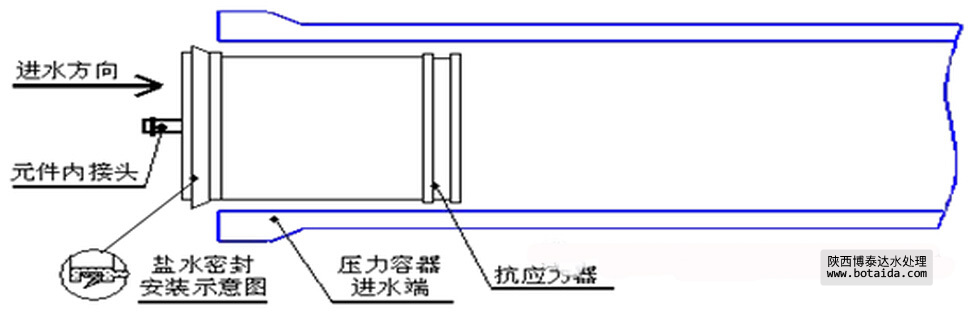 2.3取出新的膜元件,檢查元件上鹽水密封圈位置和方向是否正確(鹽水密封圈開口方向必須面向進(jìn)水方向),如下圖: