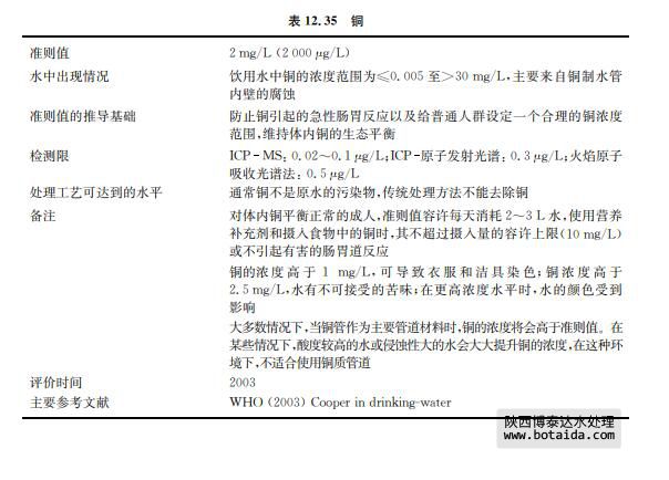 ?。桑校茫酉嚓P(guān)研究資料表明成人經(jīng)口攝入的銅濃度可接受范圍的上限是不確定的,但是 成人攝入量通常范圍是數(shù)毫克每天(每天大于2或3mg),而不是更多的量。銅不良效應(yīng) 的評估僅依據(jù)攝入含銅污染的水后腸胃道所起的不良效應(yīng)。目前有關(guān)研究的毒理學(xué)資料 建立在實驗動物的基礎(chǔ)上,不能適用于人類的情況,不能用于確定銅濃度可接受范圍的上 限,但有助于確定不良反應(yīng)的作用方式。由于觀察到的腸胃道反應(yīng)受到消化道內(nèi)濃度較 高(比24h的攝入量還要高)銅干擾,銅導(dǎo)致腸胃道反應(yīng)的研究結(jié)果必須謹(jǐn)慎使用。近 期的研究描述了引起腸胃道反應(yīng)的飲用水中銅的閾值,但仍存在銅對敏感人群長期效 應(yīng)的不確定性,例如,具有 Wilson病(肝豆?fàn)詈俗冃裕┗蚝推渌w內(nèi)銅平衡代謝障礙 的人群。