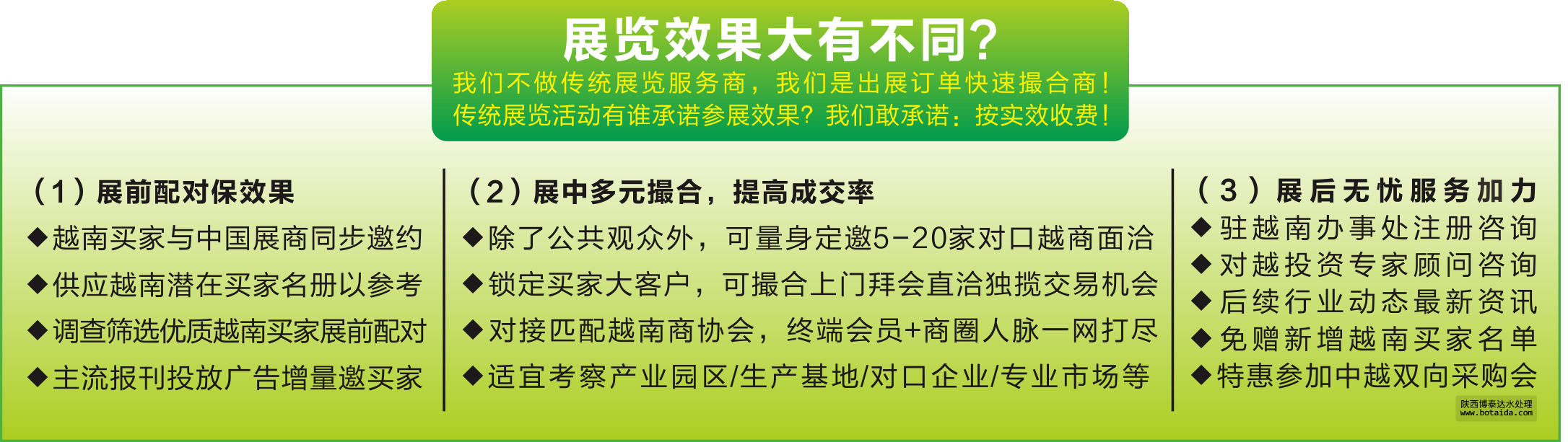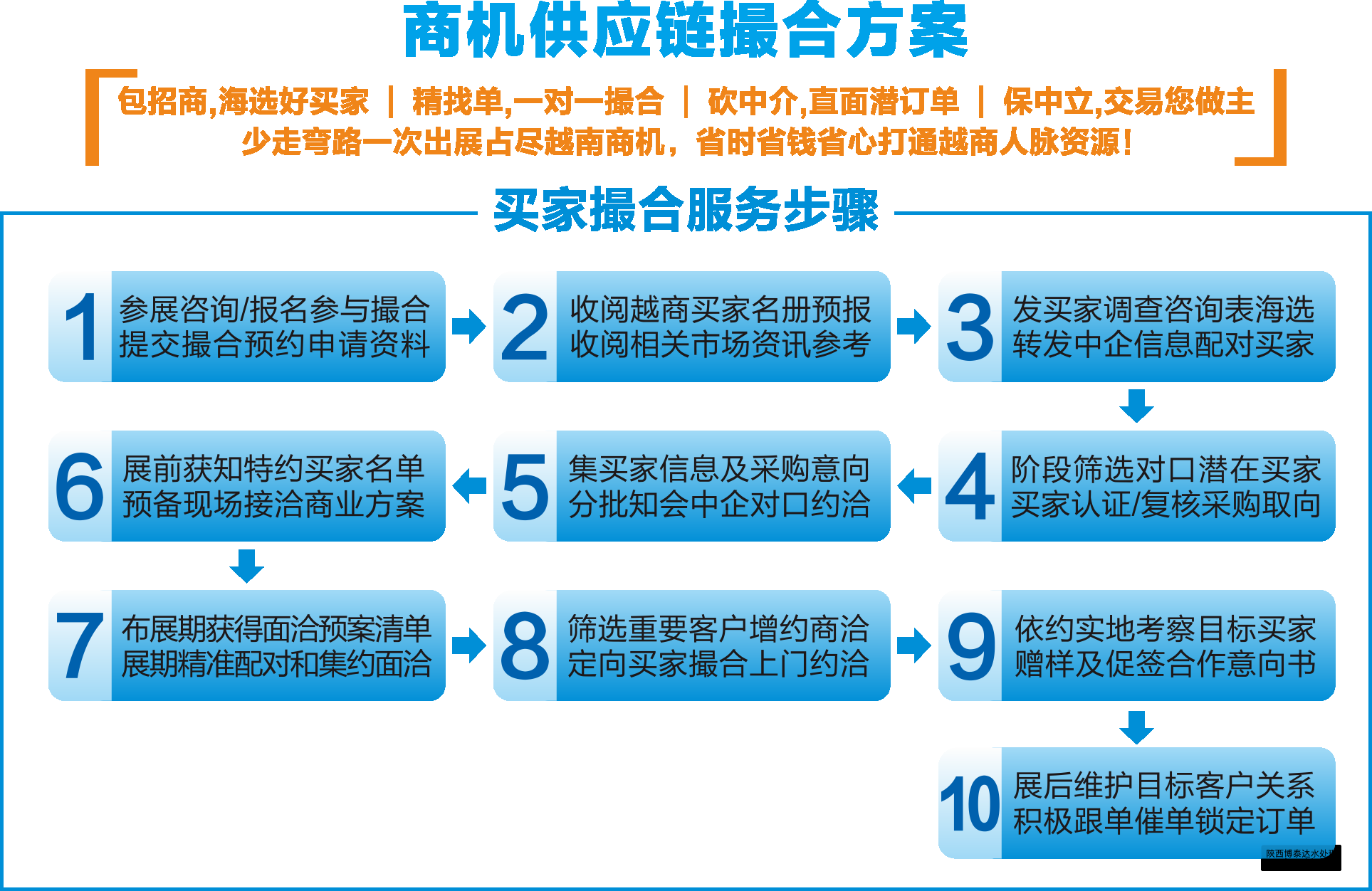 除了公共觀眾外,可量身定邀5-20家對(duì)口越商面洽