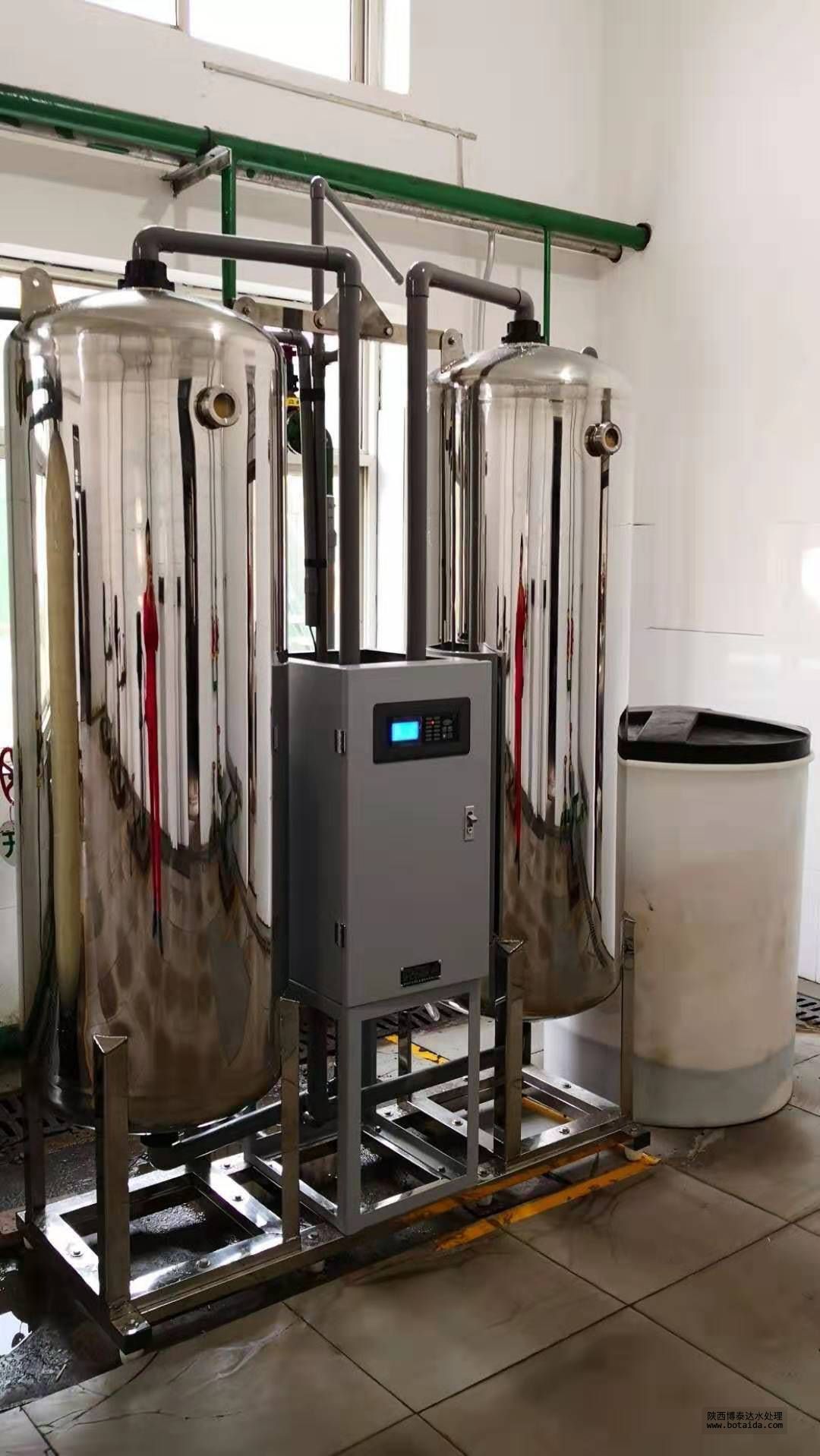 1、該全自動軟化水系統(tǒng)為一套雙罐系統(tǒng),采用浮動床逆流再生工藝,控制系統(tǒng)采用平面閥全自動方式控制,同時運行,分別再生。