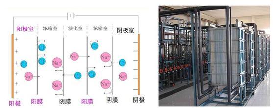電滲析是利用離子交換膜對(duì)溶液中陰陽例子的選擇透過性,以直流電場(chǎng)為推動(dòng)力的膜分離方法,它是使溶質(zhì)和溶液分離的一種物理化學(xué)過程。