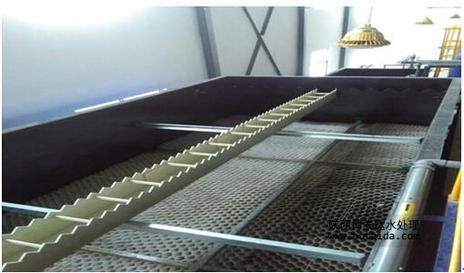 水解酸化池內(nèi)部可以不設(shè)曝氣裝置,控制停留時(shí)間再水解、酸化階段,不出現(xiàn)厭氧產(chǎn)氣階段,前兩個(gè)階段的COD去除率不是很高,因?yàn)樗哪康闹皇菍⒋蠓肿拥淖兂尚》肿佑袡C(jī)物,一般去除率在20%左右,產(chǎn)氣階段的COD去除率一般在40%左右,但這是產(chǎn)生的硫化氫氣體要進(jìn)行除臭處理,且達(dá)到產(chǎn)氣階段的停留時(shí)間要較前兩階段長(zhǎng),也就是要出現(xiàn)厭氧狀態(tài)。缺缺氧池內(nèi)要設(shè)置曝氣裝置,控制溶解氧在0.3-0.8mg/l,利用兼氧微生物及生物膜來(lái)降解廢水中的有機(jī)物,接觸氧化池內(nèi)的曝氣器要慎重選擇,既要保證供氧量,又要確保有利于生物膜的脫落、更新。一般不選用微孔曝氣器作為池底的曝氣器。