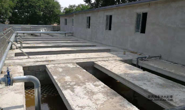 我國(guó)北方一些以馬鈴薯為原料的小型淀粉廠,在生產(chǎn)工藝、生產(chǎn)季節(jié)等條件不適宜釆取生物處理法時(shí)可采用沉淀分離一單純曝氣法組合工藝,通過沉淀分離,可減輕單純曝氣法的處理負(fù)荷,還有調(diào)節(jié)、穩(wěn)定水質(zhì)水量的作用。后續(xù)單純曝氣的目的是保證處理后出水達(dá)標(biāo),同時(shí)也可把沉淀分離過程中生成的有機(jī)酸吹脫出去,使廢水達(dá)中性。