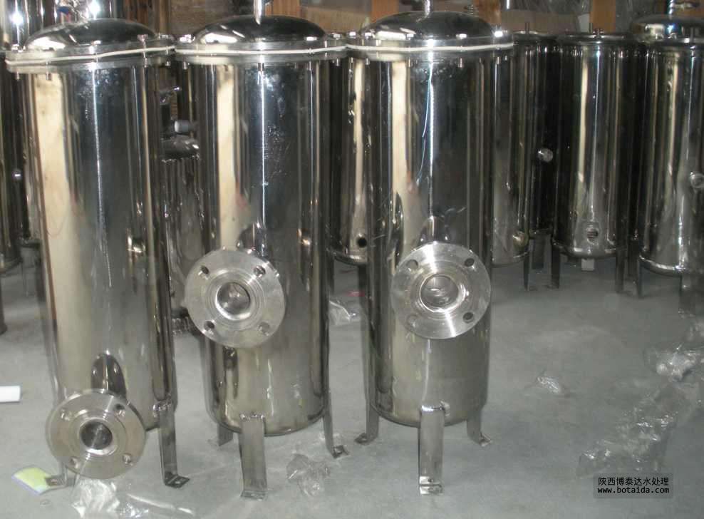 精密過濾器(又稱作保安過濾器),筒體外殼一般采用不銹鋼或PE材質(zhì)制造,內(nèi)部采用PP熔噴、線燒、折疊、鈦濾芯、活性炭濾芯等管狀濾芯作為過濾元件,根據(jù)不同的過濾介質(zhì)及設(shè)計(jì)工藝選擇不同的過濾元件,以達(dá)到精密過濾器出水對(duì)應(yīng)要求水質(zhì)。